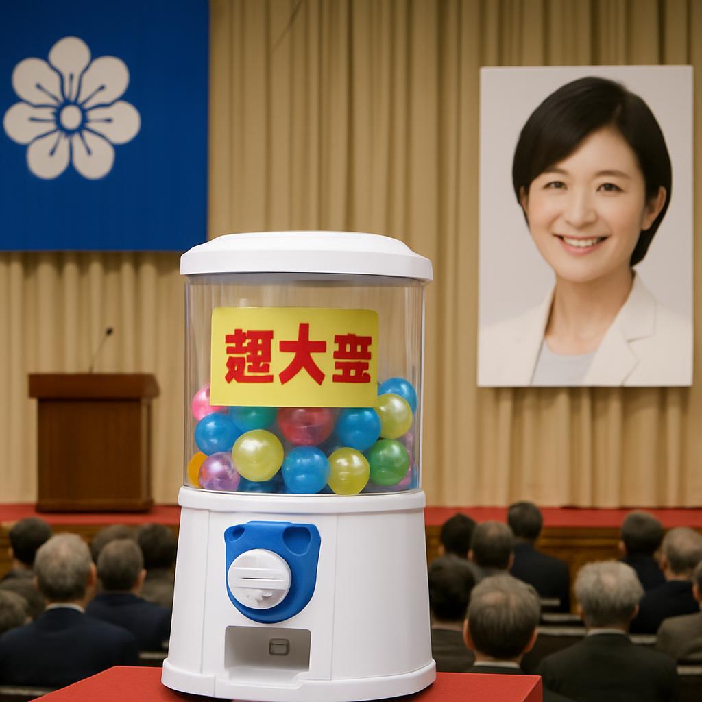 自民党大会会場に「ガチャ」が初登場「超大当たり」景品は“サナエ生ボイス”機能付き⋯